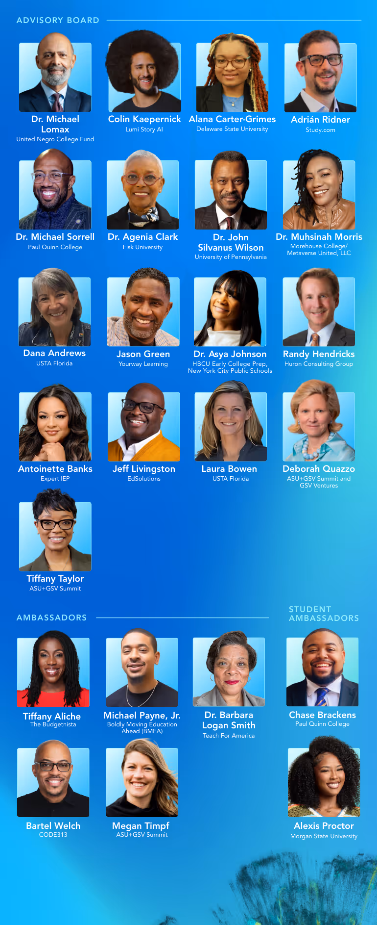 As we build on this foundation, we’re proud to announce the HBCU Partnership Advisory Board and Ambassadors: an assembly of dedicated partners in impact who will help steward and guide this long-term commitment to equity, access, and economic mobility.